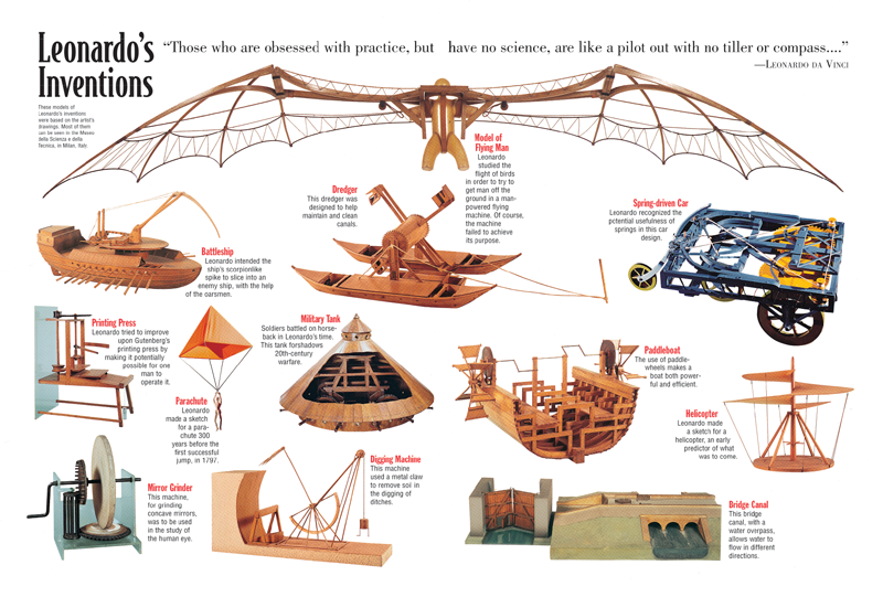 Inventions Leonardo Da Vinci – pop up models from the drawings of Leonardo Da Vinci